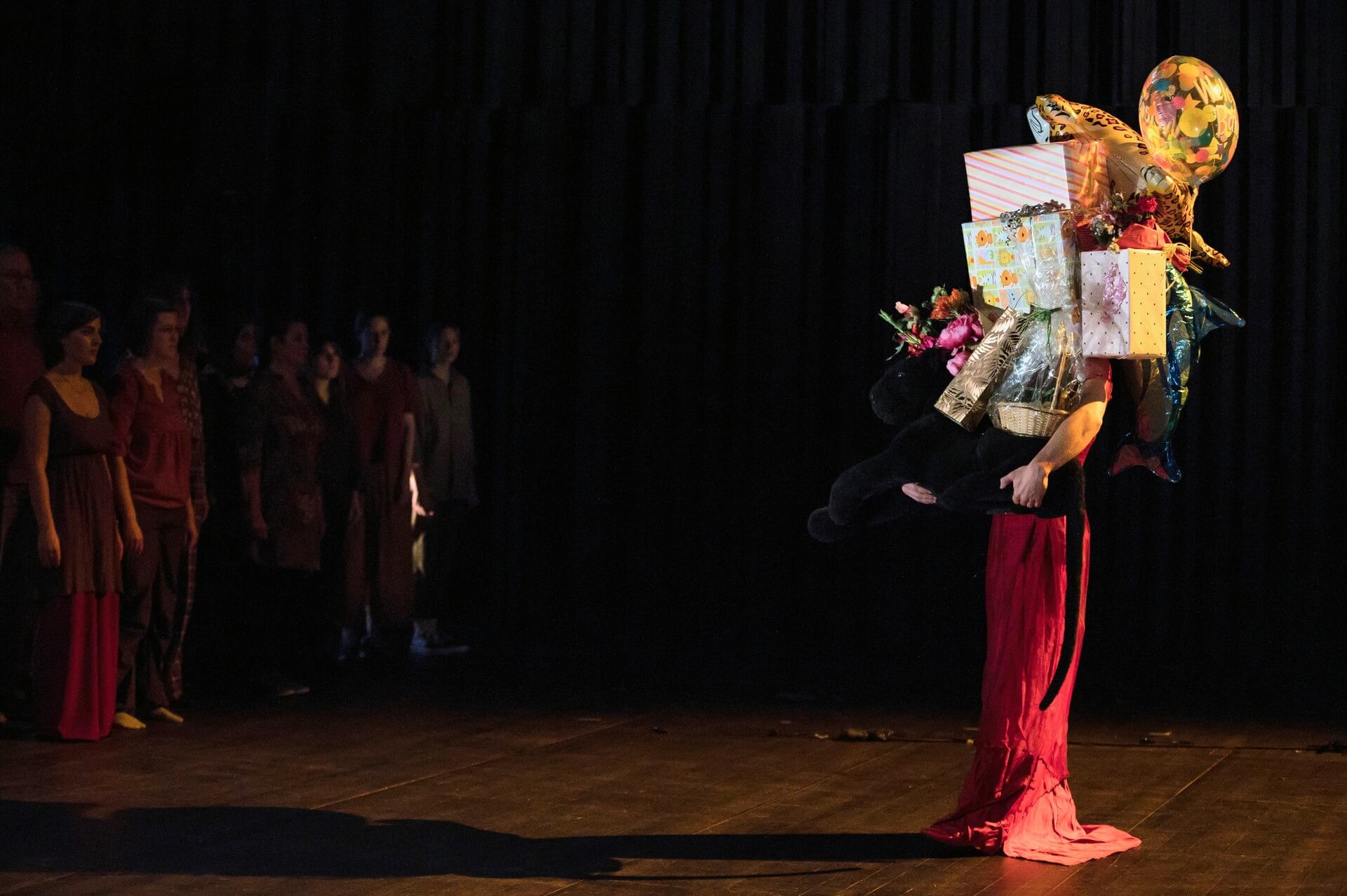 Les performeurs donnent corps à une création pluridisciplinaire où danse, chant, théâtre, arts plastiques sont convoqués sur scène. Écriture dramaturgique, processus compositionnel et écriture au plateau sont partagés avec un groupe formé d’artistes professionnels et de participants amateurs, réunis en un chœur citoyen durant deux semaines de co-création.